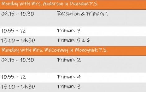 Our Shared Lessons with Moneynick will start this year on Thursday 9th November and run for 4 consecutive weeks. Mrs McKeever will take the lessons and the theme will be, 'Sports and STEM'. We look forward to welcoming the children and staff to Duneane from Moneynick!